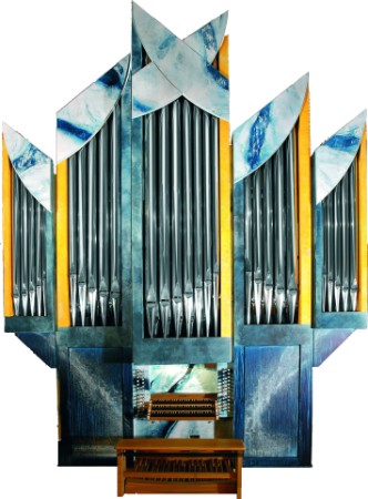 Die farblich Fassung der Orgel, welche im Orgelpreis inbegriffen ist, nahm der Künstler Jacques Gassmann vor. Er ist ein anerkannter Künstler, der u.a. zahlreiche Orgeln auf sehr unterschiedlichen Weisen bemalt hat.